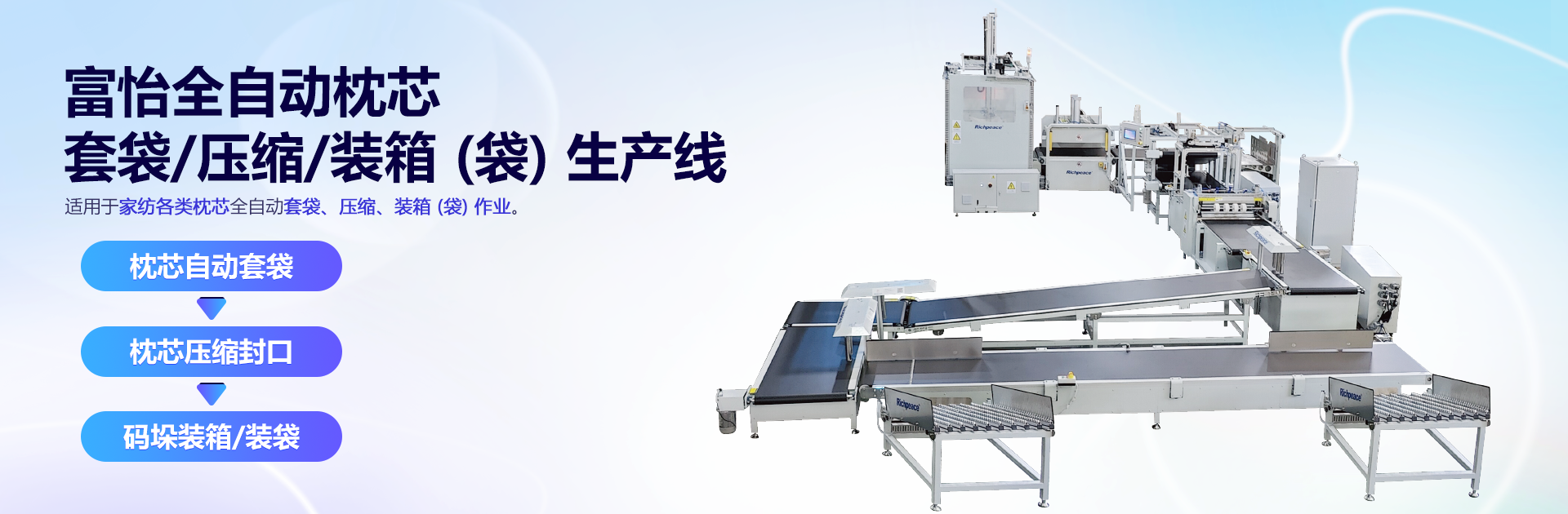 床品件套、被芯、毛毯、睡袋、窗簾等家紡產品的絎縫、絎繡、繡花、裁剪、縫紉自動化生產解決方案。